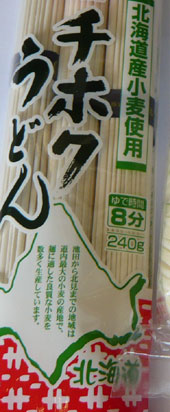 知り合いのMちゃんが北海道旅行のおみやげにと、地元のスーパーで買ってきた乾麺のうどんをくれました。Mちゃんは、旅行にいくとおみやげは大抵地元のスーパーを物色して買って帰るそうです。もちろんNB(全国ブランド)商品ではなくて、地元のメーカーによる地域限定商品です。スーパーで購入する理由を聞くと、「スーパーで販売されている ⇒ 地元の消費者に支持されている ⇒ 良品を安く買える」ということだそうで、言われてみれば筋は通ります。っで、もらったのが北海道産小麦を使用した、乾燥うどん。もちろんおみやげは誰にでも乾燥うどん、ということではなくて、職業柄研究しなさいということで、特別にくれたんだと思います。