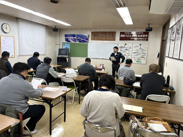 今期は1月10日に既に始まり、これから2ヶ月間をかけ、「うどんの打ち方」はもちろんのこと、出汁のとり方、醤油の話、小麦粉の話といったうどんの原材料については一通りみっちりと勉強します。またそれら以外に、一見うどんとは関係のない、就職対策や経営シミュレーションといった、うどん店経営には必須の実践的な科目もあります。更には実際に製粉工場見学をし、うどんの主原料である小麦粉がどうやって作られるのかを勉強します。また「そば実習」、「ラーメン実習」といった他分野も実習し、「うどんの繁盛店巡り」及び「店舗実習」をこなし、「さぬきうどん科」がめでたく修了となります。